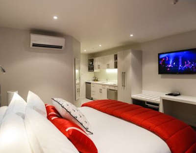 Qualmark四星级公寓式酒店,位于但尼丁市中心,毗邻餐馆、咖啡店;酒店提供免费WIFI和停车位,第一天并提供一顿简单的欧式早点。距离Intercity 大巴但尼丁市中心车站步行20分钟。