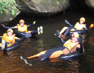 先搭乘火车到森林深处的钟乳石入口,换上防水衣拿上装备,跟着教练经过20分钟的登山路程就可以开始钟乳洞的步行探险了,还有机会手持并近距离观察钟乳石;完成所有陆上的活动,最后才是这项活动的重头戏-黑水漂,在洞中漂流的时候需要把头灯关闭,以观赏岩洞中的Glow Worm;从钟乳洞出来后,将继续漂流并有一段激流漂流,速度跟方向需要自己拍打水面控制。需要自备泳衣和毛巾,如果没有防水相机,可以让教练帮着拍照。活动参加者允许的最小年龄为10岁。
