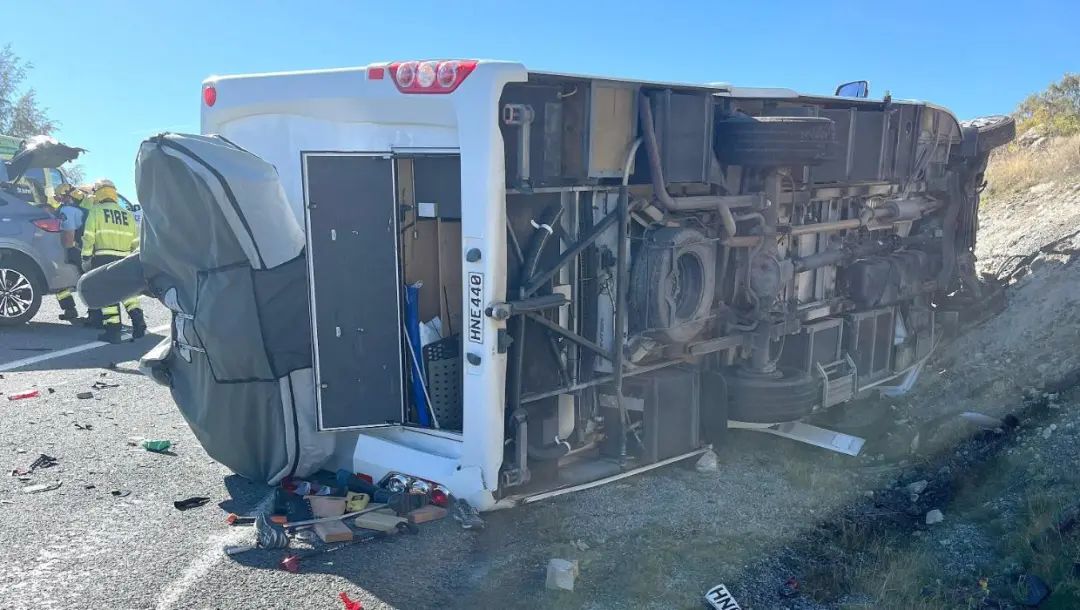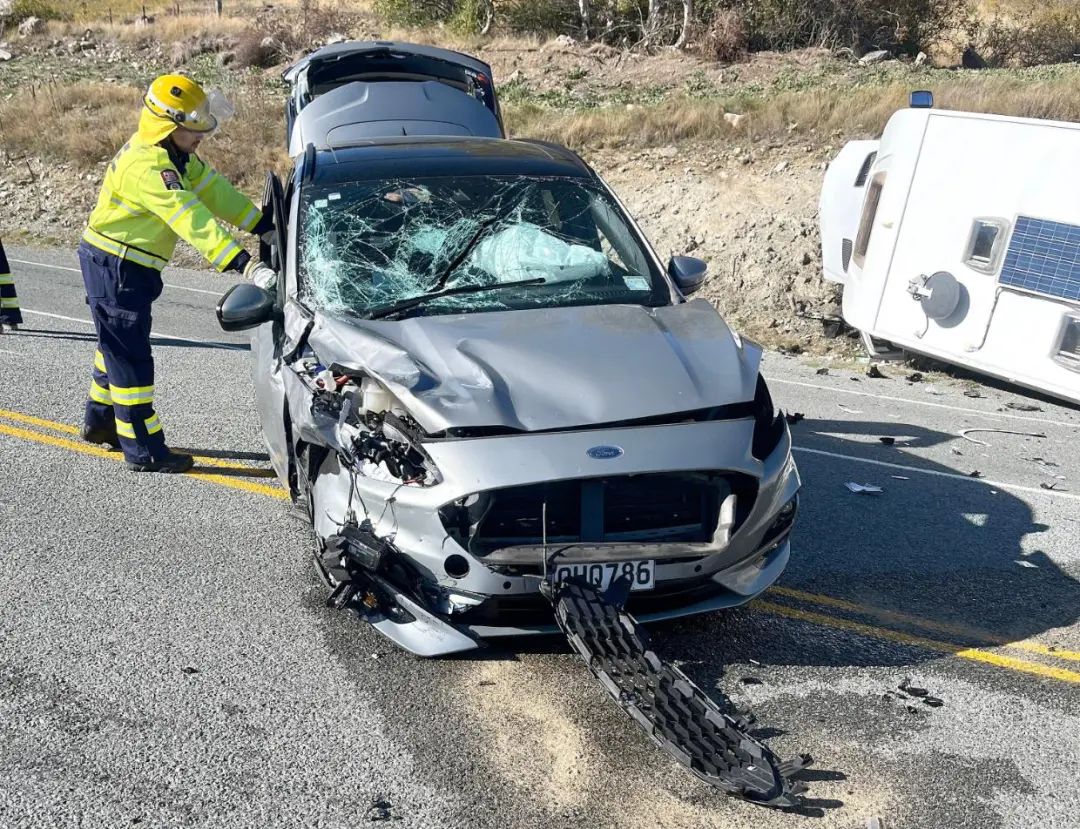 一辆中国游客驾驶的轿车和一辆旅行房车发生严重碰撞,房车侧翻。