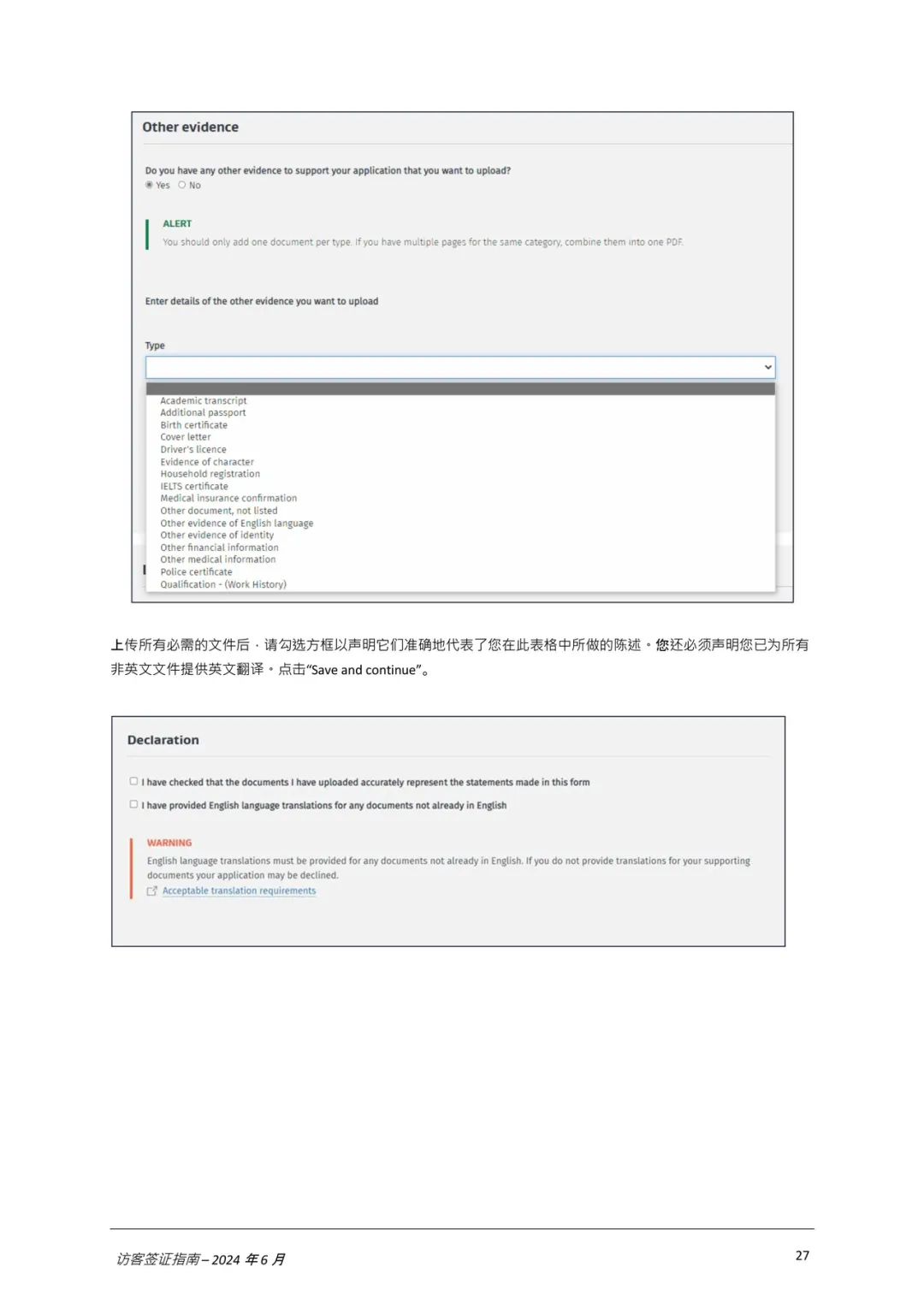 从 2024 年 6 月 17 日起,所有访问签证申请者必须为任何非英语的支持文件提供经过认证的英文翻译(certified English translation)。