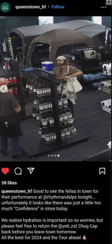 新年到来,一个澳洲歌手在皇后镇社死了!澳洲Ocean Alley乐队正在新西兰巡演,跨年时是在皇后镇演出,结果乐队的键盘手兼主唱Lachlan Galbraith在皇后镇的一个商店内,被发现“顺手牵羊”的行为,而且是被监控拍到。商家毫不留情的发到社交媒体上了。皇后镇Hunting&Fishing商店在社交媒体上发帖称,很高兴这个乐队在新年夜来镇上演出,但希望该乐队主唱在...